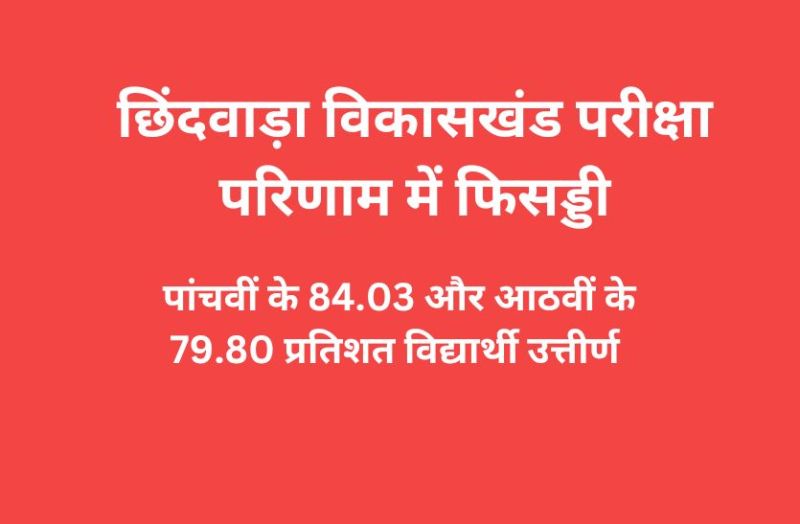 छिंदवाड़ा. कक्षा 5वीं एवं 8वीं के परीक्षा परिणामों में प्रदेश में सातवीं रैंकिंग हासिल करने वाले छिंदवाड़ा जिले की यह उपलब्धि छिंदवाड़ा विकासखंड से नहीं वरन जिले के दूसरे विकासखंडों की बदौलत मिली है। मुख्यालय होने के बावजूद छिंदवाड़ा विकासखंड में कक्षा 5वीं एवं 8वीं के अनुत्तीर्ण होने वाले विद्यार्थियों की संख्या अधिक है। छिंदवाड़ा विकासखंड में कक्षा 5वीं के विद्यार्थियों के पास होने का प्रतिशत 84.03 और कक्षा 8वीं के विद्यार्थियों के पास होने का प्रतिशत 79.80 है।
