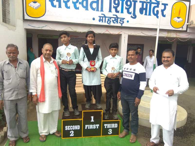 पालाखेड़/मोहखेड़ . मोहखेड़ सरस्वती शिशु मंदिर, हाई स्कूल में हिन्दी विषय पर निबंध प्रतियोगिता, कैरम, शतरंज प्रतियोगिता का आयोजन किया गया। विजेता छात्र छात्राओं को पुरस्कृत किया गया। े पुरस्कार वितरण में संयोजक मंडल के सदस्यों ने किया। प्रतियोगिता निबंध में सुमित घोरसे प्रथम, वंशिका वाघ द्विती, अर्पण कालभूत तृतीय, कैरम में प्रथम भूमिका साहू, श्याम खान द्वितीय, धु्रव बंदेवार तृतीय रहे, वहीं शतरंज प्रतियोगिता में मोनिका साहू, उदित दास उदासी, धनश्याम कालभूत आदि ेको पुरस्कृत किया गया।