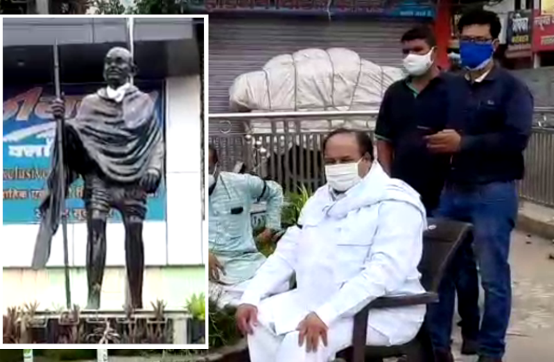 कोरोना मरीजों के इलाज के अभाव का मुद्दा : गांधी प्रतिमा के सामने अनिश्चितकालीन धरने पर बैठे कांग्रेस विधायक