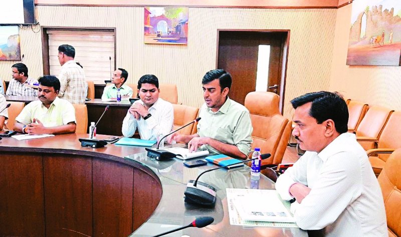 बैठक में मौजूद कलेक्टर व अन्य अधिकारी।