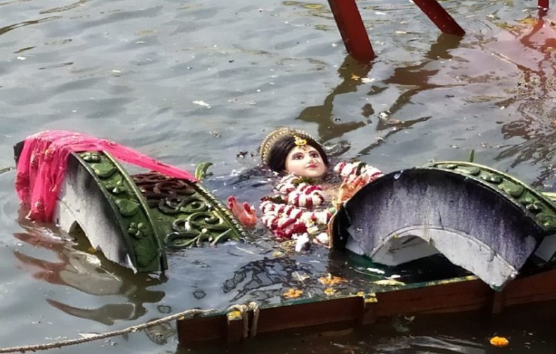Festival: धूमधाम से भक्तों ने किया मां दुर्गा प्रतिमा का विसर्जन