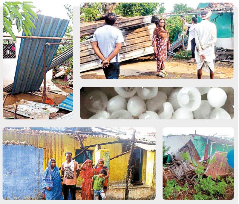 डुंगरिया. डुंगरिया सहित पनारा एवं आसपास के गांवों में मंगलवार को बारिश के साथ ओले गिरे। मंगलवार दोपहर को मौसम ने अपना मिजाज बदला और घने काले बादल छा गए तेज हवा एवं बारिश के साथ ओले गिरने शुरू हो गए। जमीन पर ओलों की सफेद चादर बिछ गई। आंधी तूफान से अजय धुर्वे के मकान की सीमेंट सीट उड़ गई। गृहस्थी को भी नुकसान पहुंचा हेै। पीडि़त ने मुआवजे की मांग की है।