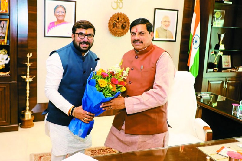 मुख्यमंत्री से डॉ.मोहन यादव भेंट करते सांसद सांसद बंटी विवेक साहू