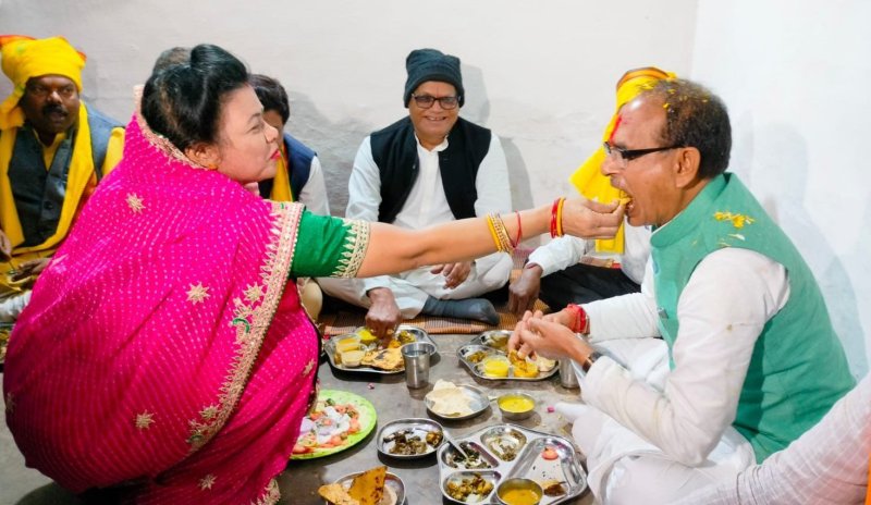 सीएम ने वार्ड क्रमांक-20 रेलवे रैक पॉइंट पातालेश्वर में रहने वाले अनुसूचित जनजाति वर्ग के कार्यकर्ता मोहन मर्सकोले के घर पहुंचे और उनके परिवार के साथ जमीन पर बैठकर सादा भोजन किया। मर्सकोले की पत्नी और उनकी बहू काजल मर्सकोले ने शिवराज भैया के लिए मक्का की रोटी, बाजरे की रोटी, ज्वार की रोटी, भिंडी की सब्जी, टमाटर की चटनी आदि परोसा। जिनका स्वाद सीएम ने भी उतने ही अपनेपन से चखा।