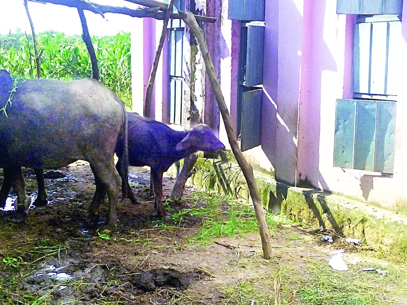 जानकारी के अनुसार शाला भवन तबेला संचालक द्वारा दान की गई जमीन पर बना हुआ है। इसी वजह से संचालक वहां अपनी मनमर्जी चलाता है। बारिश के समय छत व दीवारों में सीपेज, तबेले से आने वाली दुर्गंध और मवेशियों के माध्यम से फैलने वाली बीमारी का खतरा और बढ़ जाता है।