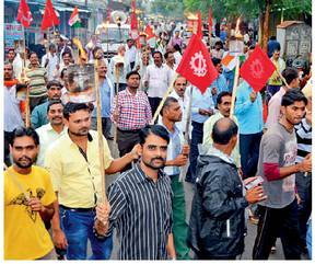 छिंदवाड़ा. जिला मुख्यालय पर शुक्रवार को देश की 11 केंद्रीय श्रमिक संगठनों से जुड़े श्रमिक नेताओं ने एकजुट होकर देशव्यापरी हड़ताल यहां भी की। इंदिरा तिराहे पर सुबह 11 बजे से दोपहर 2 बजे तक धरना दिया गया और उसके बाद एक रैली निकाली। हड़ताल के कारण, बीमा, बीएसएनएल और बैंकों और कोलइंडिया के दफ्तरों में कामकाज प्रभावित दिखा।