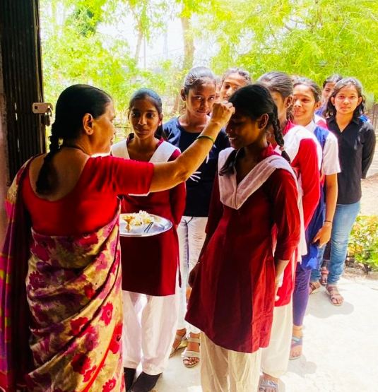 Tilak applied, welcomed with shower of flowers