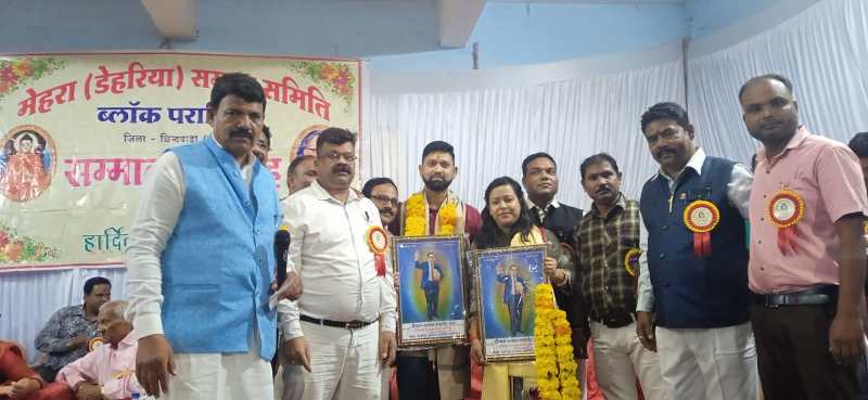 छिन्दवाड़ा/ परासिया. डेेहरिया मेहरा समाज समिति ने राजनीतिक दलों को चेतावनी दी है कि समाज की उपेक्षा महंंगी पड़ेगी। क्षेत्र में डेहरिया समाज के दो लाख लोग और पचास हजार मतदाता हैं। समाज राजनीतिक भागीदारी चाहता है। पेंच स्टाफ क्लब में समिति की ओर से आयोजित कार्यक्रम में वक्ताओं ने कहा कि सिर्फ वादों से काम नहीं चलेगा। हमें भागीदारी चाहिए। कार्यक्रम में समाज के शिक्षकों का सम्मान किया गया। समाज के प्रदेश, जिले और ब्लाक के बडे पदाधिकारी कार्यक्रम में उपस्थित रहे। शिक्षा के क्षेत्र में डेहरिया समाज के योगदान को बताया।गौरतलब है कि डेहरिया समाज के 104 शिक्षक परासिया विधानसभा क्षेत्र में काम करते हैं। जिला कार्यकारी अध्यक्ष चंद्रभूषण डहेरिया ने कहा कि शिक्षक समाज का निर्माण करते हंै। डेहेरिया समाज के शिक्षक समाज के भविष्य के निर्माण में सहयोग कर रहे हैं।प्रदेश अध्यक्ष ब्रजेश भट्ट ने कहा कि क्षेत्र में डेहरिया समाज के दो लाख लोग और पचास हजार मतदाता हैं। समाज की राजनीतिक उपेक्षा महंगी पड़ेगी। समाज राजनीतिक भागीदारी चाहता है। कार्यक्रम में डेेहरिया मेहरा समाज समिति प्रदेश अध्यक्ष ब्रजेश भट्ट, महिला प्रकोष्ठ प्रदेश अध्यक्ष सुनीता बामनिया, जिला अध्यक्ष महिला मंजु लता डेहरिया, डेेहरिया मेहरा समाज समिति जिला अध्यक्ष दयानंद डेहरिया, शिवनारायण डेहरिया, डेेहरिया मेहरा समाज समिति जिला कार्यकारी अध्यक्ष चंद्रभूषण डेहरिया लोकेश डेहरिया, डेेहरिया मेहरा समाज समिति ब्लाक अध्यक्ष मनमोहन डेहरिया, संतोष डेहरिया, नगर परिषद बडकुही अध्यक्ष भारत डेहरिया, राजेश डेहरिया, अशोक डेहरिया आदि ने शिक्षकों का सम्मान किया। कार्यक्रम में शीतल डेहरिया, महिला संगठन से म्ंाजुलता डेहरिया, अन्नपूर्णा डेहरिया, मालती डेहरिया, सोनम डेहरिया उपस्थित रहीं।