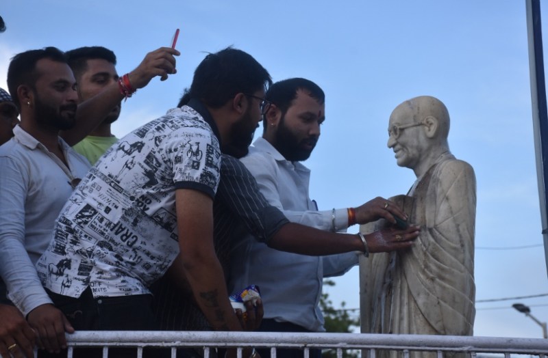 Mahatma Gandhi News:युवक कांग्रेस ने गांधी प्रतिमा का दूध से किया अभिषेक