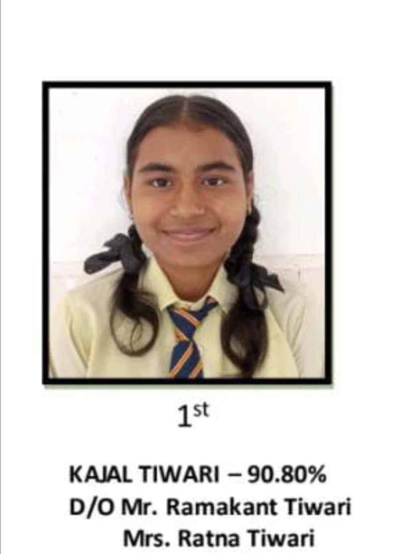 बता दे की परिणाम आते ही छात्रों, अभिभावकों एवं शिक्षकों के बीच खुशी की लहर दौड़ गयी। कक्षा में काजल तिवारी पुत्री श्री रमाकांत तिवारी 90.8% अंकों के साथ प्रथम स्थान अर्जित किया। वही विष्णु तिवारी पुत्र श्री रविशंकर तिवारी 89.8% अंकों के साथ द्वितीय, श्रद्धा दुबे पुत्री सुनील दुबे 89% अंकों के साथ तृतीय, मोनिका गुप्ता पुत्री श्याम सुन्दर गुप्ता 88.6% अंकों के साथ चतुर्थ एवं समीक्षा पाण्डेय पुत्री सुरेश पाण्डेय 85.6% अंकों के साथ पञ्चम स्थान पर रहे।