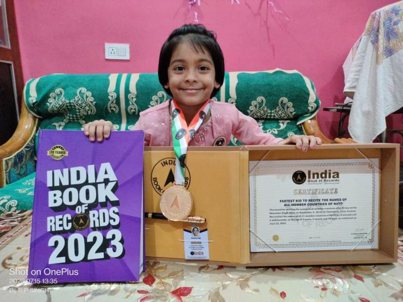Chitrakoot News : ये फोटो इंडिया बुक ऑफ़ रिकॉर्ड का खिताब जीतने वाली 4 साल की स्वर्णिमा की है