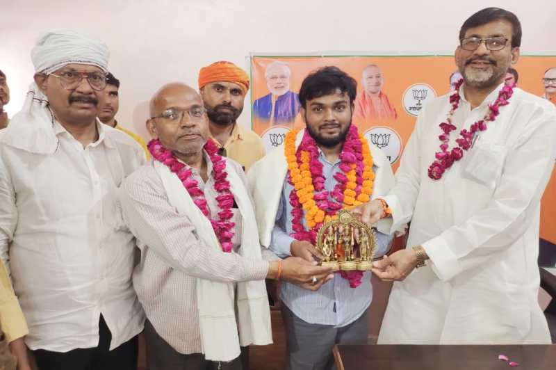 पीसीएस में चयनित युवक का सम्मान करते चित्रकूट सांसद