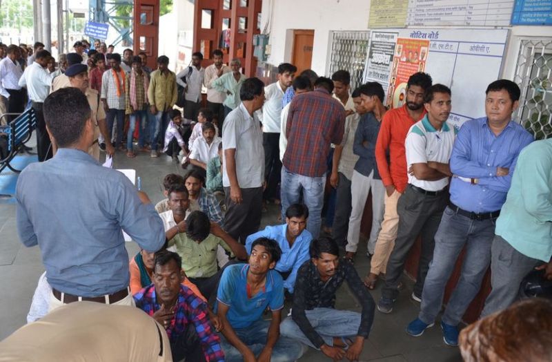 चित्तौडग़ढ़ रेलवे स्टेशन पर यात्रियों की टिकट के लिए नहीं इसलिए लगी लंबी लाइन