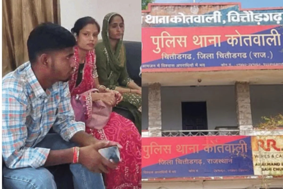 कोतवाली थाने में परिजनों संग बैठी पीड़ित महिला, फोटो पत्रिका