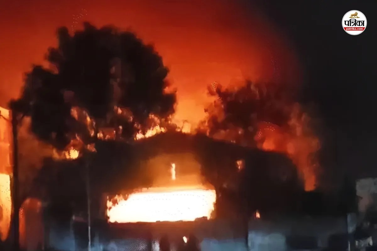 केमिकल फैक्ट्री में ब्लास्ट के बाद लगी भीषण आग। फोटो: पत्रिका