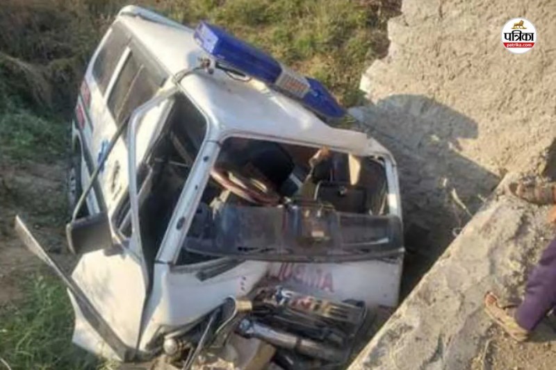 निजी एंबुलेंस खाई में गिरी, पत्रिका फोटो