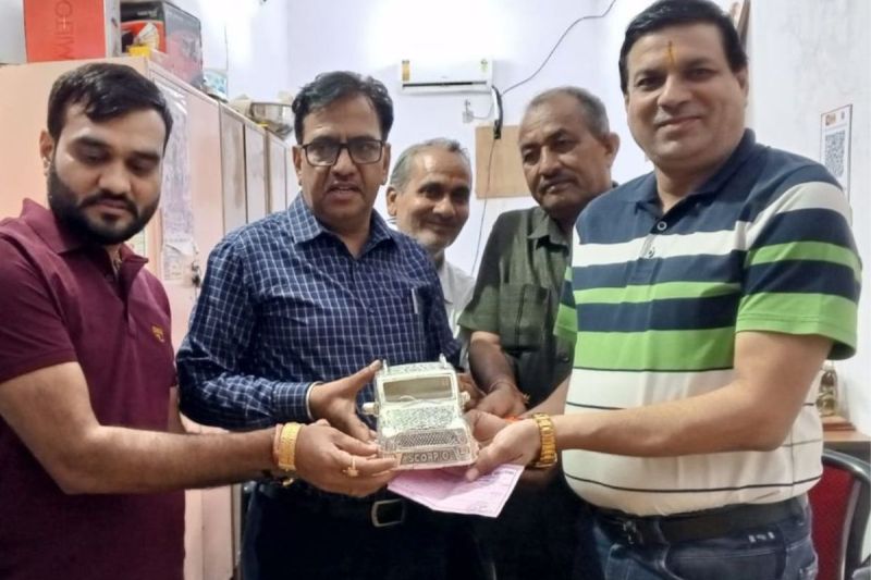 Chittorgarh News: चित्तौड़गढ़।श्री सांवलियाजी स्थित सांवरा सेठ के दरबार में सोमवार को एक भक्त ने डेढ़ किलोग्राम से अधिक चांदी से बनी स्कॉर्पियो गाड़ी भेंट की।