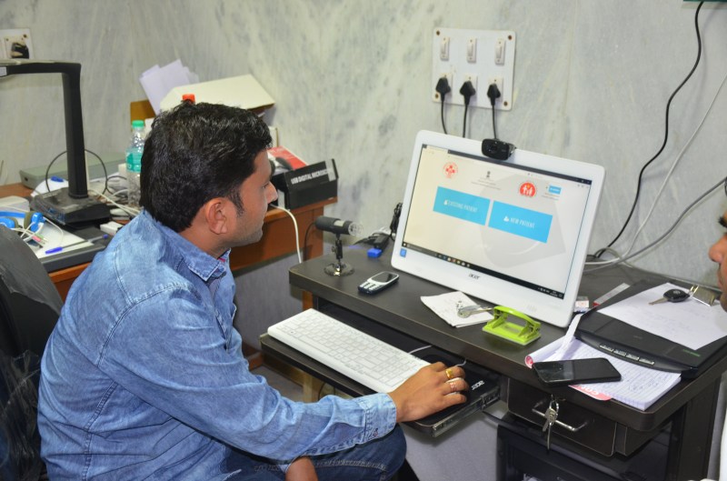 श्री सांवलियाजी राजकीय सामान्य चिकित्सालय स्थित टेलीमेडिसिन केन्द्र पर कार्य करते ऑपरेटर