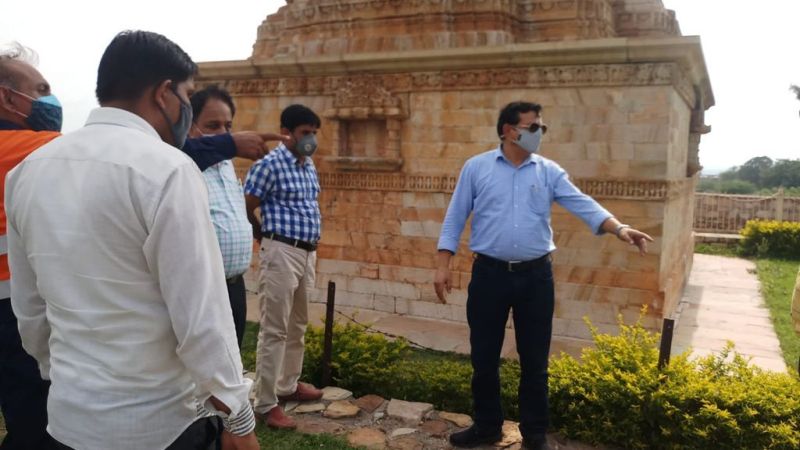 चित्तौडग़ढ़. चित्तौडग़ढ़ दुर्ग के पूर्वी द्वार के समीप स्थित कीर्ति स्तंभ पर पिछले दिनों लगातार दो दिन तक आकाशीय बिजली गिरने एवं अनय जगह पर तडि़त चालक यंत्र नहीं होने के मामले को गंभीरता से लेते हुए शनिवार को दोपहर बाद पुरातत्व विभाग जोधपुर के आला अधिकारी अधीक्षण पुरातत्वविद विपिन नेगी यहां पहुंचे। इस दौरान उन्होंने कीर्ति सतभ का निरीक्षण किया वहां पर किस तरह से तडि़त चालक यंत्र स्थापित किया जाए इस बारे में जानकारी ली। उनके साथ चित्तोडग़ढ़ के पुरातत्व संरक्षण सहायक रतन जीतरवाल भी थे।