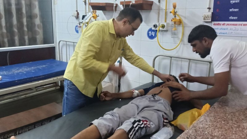 घायल युवक की जांच करते चिकित्सक: फोटो पत्रिका