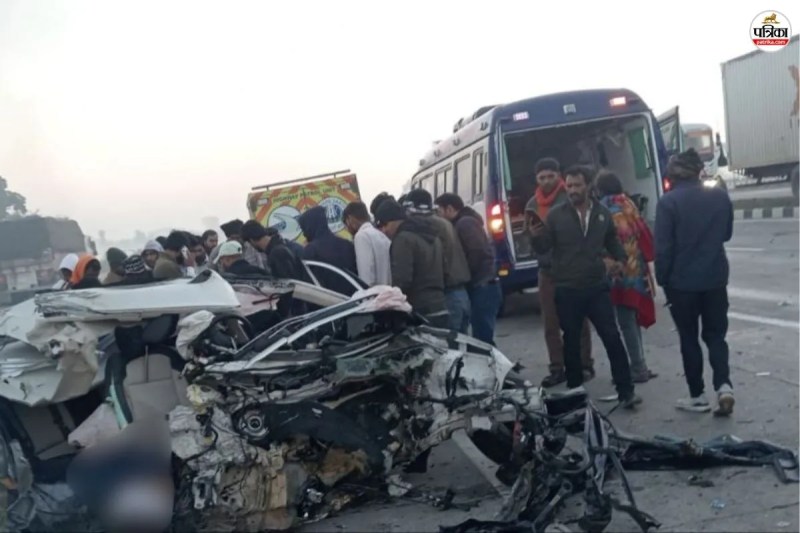 हादसे के बाद बुरी तरह क्षतिग्रस्त कार (फोटो-पत्रिका)