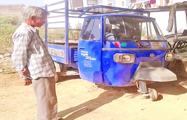 चित्तौडग़ढ़। शहर में संगम मार्ग पर कबाड़ी के गोदाम के बाहर खड़े ऑटो के टायर अज्ञात व्यक्ति चुरा कर ले गया। इस सम्बंध में प्रार्थी ने शनिवार सुबह कोतवाली थाने में रिपोर्ट दी है। पुलिस मामले की जांच कर रही है। जानकारी के अनुसार सावा हाल चित्तौडग़ढ़ निवासी अल्पेश पुत्र देवीलाल माहेश्वरी का शहर में संगम मार्ग पर कबाड़ का गोदाम है। गोदाम के बाहर की ओर तीन पहिया लोडिंग ऑटो खड़ा किया था। शुक्रवार रात अज्ञात व्यक्ति रात को तीन में से दो टायर स्टेपनी सहित खोल कर ले गए। शनिवार सुबह देवीलाल माहेश्वरी ने ऑटो देखा तो उसके दो टायर गायब थे। देवीलाल ने मामले की सूचना कोतवाली थाना पुलिस को दी। अल्पेश भी आवश्यक कार्य से राजसमंद गया हुआ था।