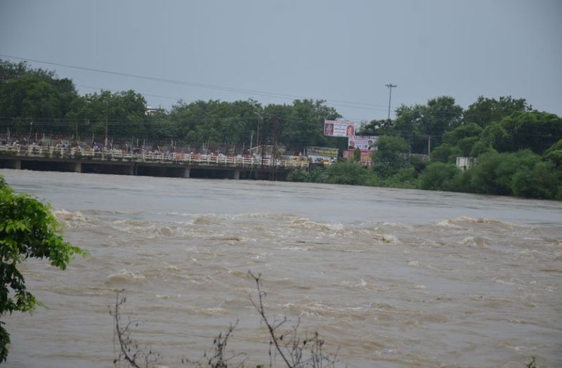 चित्तौडग़ढ़. जिले में गंभीरी नदी उफान पर है। बेड़च में भी पानी का प्रवाह तेज हो गया है। चित्तौडग़ढ़ शहर के मध्य से गुजर रही गंभीरी नदी में शनिवार सुबह गंभीरी बांध से ३७ हजार क्यूसेक पानी छोड़ा गया। इसके बाद दोपहर करीब 2 बजे पानी नदी की पुलिया पर खतरे के निशान के नजदीक पहुंचने पर शहर में बाढ़ का खतरा देखते हुए अलर्ट जारी कर दिया गया। प्रशासन ने नदी पर बनी छोट़ी पुलिया पर यातायात बंद करा दिया लेकिन महाराणा प्रताप सेतु मार्ग से आवागमन जारी है। बाड़ी मनोसरवार बांध के पांच गेट खोल सुबह पानी छोड़ा गया तो गंभीरी बांध का जलस्तर तेजी से बढ़ा। इसके बाद जिले के सबसे बड़े गंभीरी बांध के 7 छोटे एवं तीन बड़े हाइड्रोलिक गेट खोल पानी छोड़ा गया तो गंभीरी नदी का जलस्तर तेजी से बढ़ा एवं शहर में खतरे के निशान से उपर पानी पहुंच गया। घोसुण्डा बांध के भी चार गेट खोल पानी छोडऩे से बेड़च नदी में भी जलस्तर बढऩे लगा। इसके प्रभाव से गंभीरी नदी में जलस्तर और अधिक बढ़ गया। शाम तक गंभीरी खतरे के निशाने से उपर बह रही थी हॉलाकि प्रशासन स्थिति नियंत्रण में होने का दावा कर रहा है।