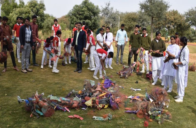 नेचर पार्क में श्रमदान कर हटाया चाइनीज मांझा व पतंगे