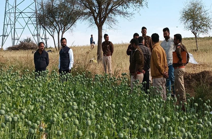 मजदूरों से सुराग मिलने पर केन्द्रीय नारकोटिक्स ब्यूरो की तीन टीमों के तीस अधिकारी व कार्मिक मौके सोमवार को ही मौके पर आ गए। उन्होंने मजदूरों को तो भेज दिया और खेत मालिक को धर दबोचा। खेत मालिक बनवारीलाल ने पूछताछ में सब सच बता दिया। कुल 1760 वर्ग मीटर में यह फसल लगाई हुई पाई गई। इस कार्रवाई में केन्द्रीय नारकोटिक्स ब्यूरो के चित्तौड़गढ़ अधीक्षक सी प्रसाद, जयपुर अधीक्षक सुधीर यादव, सीआई सत्येन्द्र यादव, सीआई देवेश दवे, सीआई अमन फोगाट, सीआई प्रशान्त दहिया, सीआई रंदेश शुक्ला, एसआई समरथ गनावा सहित पांच उप निरीक्षक, 11 हवलदार, पांच चालक मिलाकर तीस जनों की टीम थी। आरोपी के विरूद्ध एनडीपीएस एक्ट के तहत मामला दर्ज किया गया है।