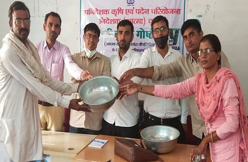 सरदारशहर. किसान सेवा केंद्र में बुधवार को आत्मा योजना के कैफेटेरिया बी-12 के अंतर्गत एक दिवसीय खरीफ कृषक गोष्ठी का आयोजन किया गया। जिसमें कृषकों को सहायक कृषि अधिकारी राकेश जाखड़, पशु चिकित्सक लक्ष्मीकांत, मांगीलाल, कृष्ण कुमार ने खरीफ फसलों की उन्नत किस्में, कीट रोग नियंत्रण, जैविक खेती आदि की जानकारी दी। गोष्ठी के उपरांत प्रश्नोत्तरी हुई। जिसमें स्थान प्राप्त करने वाले किसानों को पुरस्कृत किया गया। इस अवसर पर ताराचंद, खिराजराम, रामनिवास, सीताराम, कृष्णा, प्रतिभा, सुमन, सावित्री आदि किसानों के अलावा कृषि पर्यवेक्षक सांवरमल जाखड़, सांवरमल पारीक, हरिसिंह, संतोष कुमारी आदि उपस्थित थे।