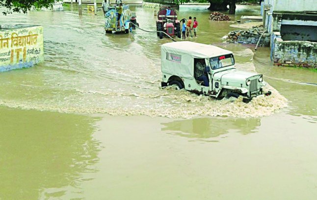 गलियां जलमग्न हो गई। तहसीलदार दीनदयाल बाकोलिया ने बताया, 77 एमएम बारिश हुई। जो