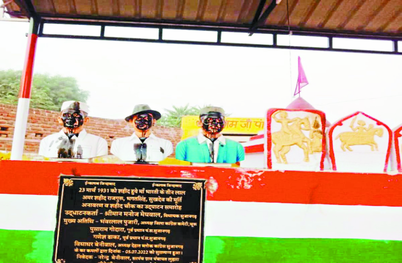 बीदासर के लुहारा गांव में शहीदों की मूर्तियों पर पोती गई कालिख।