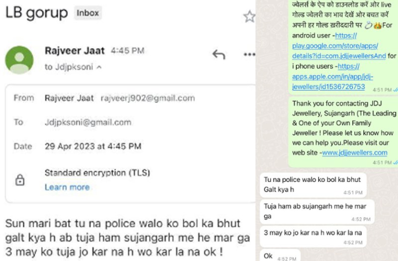 मैसेज में लिखा है कि तूने पुलिस वालो को बोल के बहुत गलत किया है। तुझे हम अब सुजानगढ़ में ही मारेंगे, 3 मई को जो करना है वो कर लेना, ओके..। नई धमकी के बाद शहर में भय का वातावरण बनने लगा है और पुलिस के लिए चुनौती बना है।