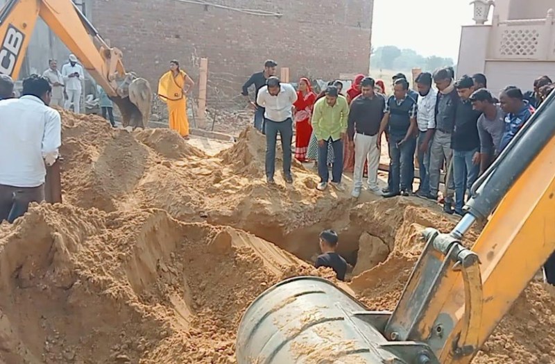 इसी दौरान मिट्टी धंस गई और मिट्टी के नीचे दौसा जिले के गांव नायड़ा निवासी 16 वर्षीय इंद्रेश दब गया। घटना के बाद साथी मजदूर विष्णु चीखने चिल्लाने लगा तो मौके पर लोगों की भीड़ लग गई। नगरपालिका के कर्मचारियों ने पालिका एवं निजी जेसीबी की सहायता से खुदाई का कार्य शुरू कर दिया, लेकिन मिट्टी में दबे मजदूर इंद्रेश का एक घंटे के रेस्क्यू के बाद भी कोई सुराग नहीं लगा।