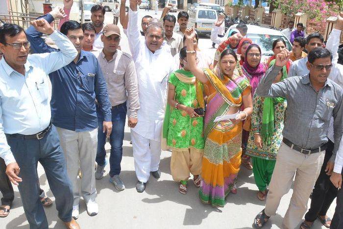 सुजानगढ़. राजस्थान पंचायती राज सेवा परिषद के आह्वान पर सोमवार को भी ग्रामसेवक संघ, पंचायत प्रसार अधिकारी संघ, पंचायत राज मंत्रालयिक कर्मचारी संगठन के सदस्य हड़ताल पर रहे। हड़ताल में शामिल कार्मिक पंचायत समिति के सामने लगे धरनास्थल से जुलूस के रूप में एसडीएम कार्यालय पहुंचे। पीईओ संघ के तहसील अध्यक्ष ठाकुरमल कताला, ग्राम सेवक संघ के जिला मंत्री जीवनराम नेहरा व तहसील अध्यक्ष रामानंद फलवाडिय़ा के नेतृत्व में एसडीएम कार्यालय के आगे प्रदर्शन कर राज्य सरकार व सीएम के खिलाफ नारे लगाए।बाद में 11 सूत्री मांगों को लेकर सीएम व पंचायती राज मंत्री के नाम एसडीएम को ज्ञापन सौंपा। जिलामंत्री नेहरा ने बताया कलम बंद हड़ताल में छह पीईओ, 19 ग्रामसेवक व 25 एलडीसी व एक बीडीओ शामिल है। ज्ञापन देने वालों में तहसील मंत्री जुगलकिशोर, मंत्रालयिक कर्मचारी संघ अध्यक्ष भंवरलाल सिहाग, पीईओ घनश्याम भाटी, मनफूलसिंह व बजरंगलाल आदि शामिल थे।