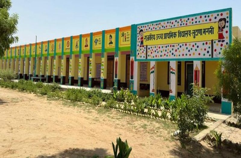 सादुलपुर. सरकारी विद्यालय का नाम आते ही जहन में टूटी-फूटी बिल्डिंग, छतों से टपकता पानी और बेहाल व्यवस्थाएं नजर आती है, लेकिन तहसील मुख्यालय से महज दस किलोमीटर दूर उपखंड के ग्रामीण क्षेत्र के गांव लुटाना मंगनी सरकारी विद्यालय ऐसा है, जो इन दिनों चर्चा में है। राजकीय उच्च प्राथमिक विद्यालय लुटाना मगनी के प्रधानाध्यापक पवन गोठवाल और उनके स्टाफ साथियों ने ग्रामीणों के सहयोग से दो वर्ष से कम समय में स्कूल की काया ही बदल दी। शिक्षण, संस्कार, पर्यावरण संरक्षण के क्षेत्र में किए काम दूसरे स्कूलों के लिए नजीर बन चुका है। मुख्य ब्लॉक शिक्षा अधिकारी बबलेश शर्मा ने बताया कि राउप्रावि लुटाना मगनी में भवन जर्जर अवस्था में था। जिसकी वजह से नामांकन भी लगातार घट रहा था। ऐसे समय में बाड़मेर से स्थानांतरित होकर अगस्त 2021 में प्रधानाध्यापक पवन गोठवाल ने कार्यग्रहण किया। इसके साथ ही विद्यालय के दिन बदलने लगे। गोठवाल ने और विद्यालय के स्टाफ ने कायाकल्प का बीड़ा उठाया। एंव स्टाफ साथियों एवं सरपंच और ग्रामीणों और गांव के युवा साथियों के सहयोग से विद्यालय का कायाकल्प कर दिया। एक समय में विद्यालय भवन जर्जर था। वहीं अब दो कमरे जनसहयोग एवं तीन कमरे ग्राम पंचायत गागडवास की तरफ से जीणोद्धार कर तैयार िकया गया है। पीने के पानी के लिए वाटर कूलर, डिजिटल शिक्षा के लिए एलईडी, प्रोजेकर इसके साथ सम्पूर्ण विद्यालय का रंग रोगन, आर्कषक शिक्षा सहायक साम्रगी दीवारों पर लिखवाई है।