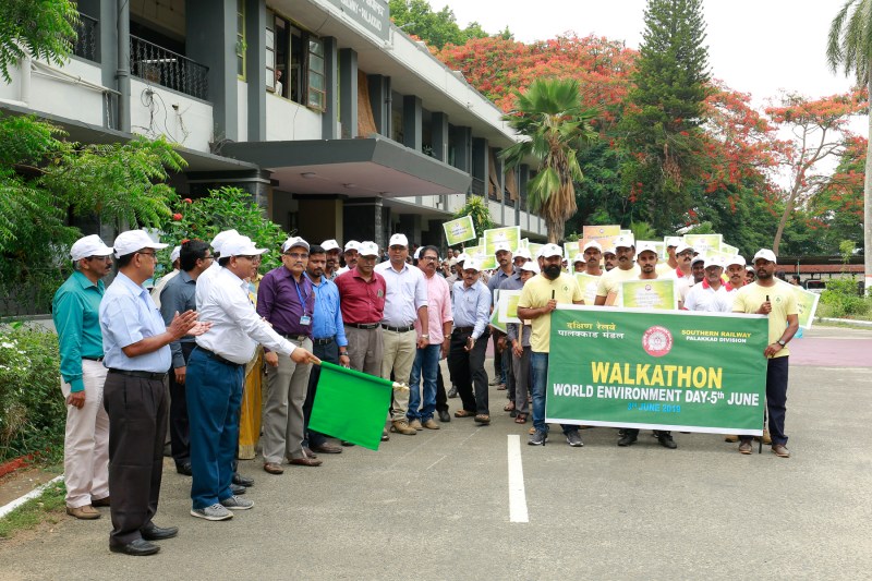 पाल्लकड़. विश्व पर्यावरण दिवस के उपलक्ष्य में सोमवार को पाल्लकड़ रेल मंडल की ओर से वॉकथान का आयोजन किया गया। मंडल रेल प्रबंधक प्रताप सिंह सामी ने वॉकथान को हरी झंडी दिखा कर रवाना किया। संभागीय कार्यालय से राष्ट्रमंडल स्तर क्रॉसिंग गेट तक वॉकथन का आयोजन हुआ।