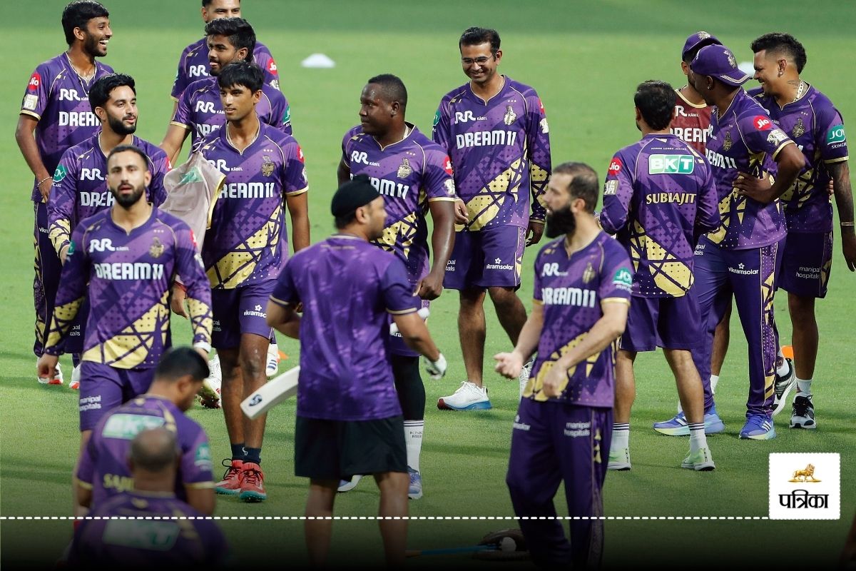 आरसीबी के खिलाफ शनिवार को मैच से पहले अभ्यास सत्र के दौरान केकेआर की टीम। (फोटो सोर्स: ANI)