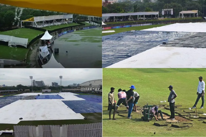 मंगलवार को ग्राउंड स्टाफ ने मिड-ऑन के पास दो से तीन फुट की खोदाई की गई थी। ग्राउंड स्टाफ ने प्रभावित क्षेत्र पर सूखी मिट्टी डाली और कृत्रिम घास लगाने का प्रयास किया था। वहीं एलेक्ट्रिक फैन की मदद से मैदान को सुखाने की कोशिश भी की गई थी।