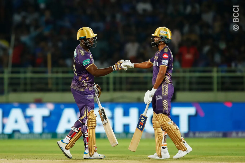 इसके बाद इस मैच में डेब्यू करने वाले अंगकृश रघुवंशी क्रीज़ पर आए। रघुवंशी ने आते ही लंबे -लंबे शॉट्स खेलना शुरू किए। रघुवंशी और नरेन ने दूसरे विकेट के लिए 48 गेंद पर 104 रन बनाए। कोलकाता को 13वें ओवर में 164 के स्कोर पर दूसरा झटका लगा। मिचेल मार्श ने सुनील नरेन को विकेटकीपर पंत के हाथों कैच कराया। नरेन शतक से चूक गए। इसके बाद रघुवंशी भी पवेलियन लौट गए। युवा बल्लेबाज ने बेहतरीन अर्धशतकय पारी खेलते हुए 27 गेंद पर 54 रन बनाए।