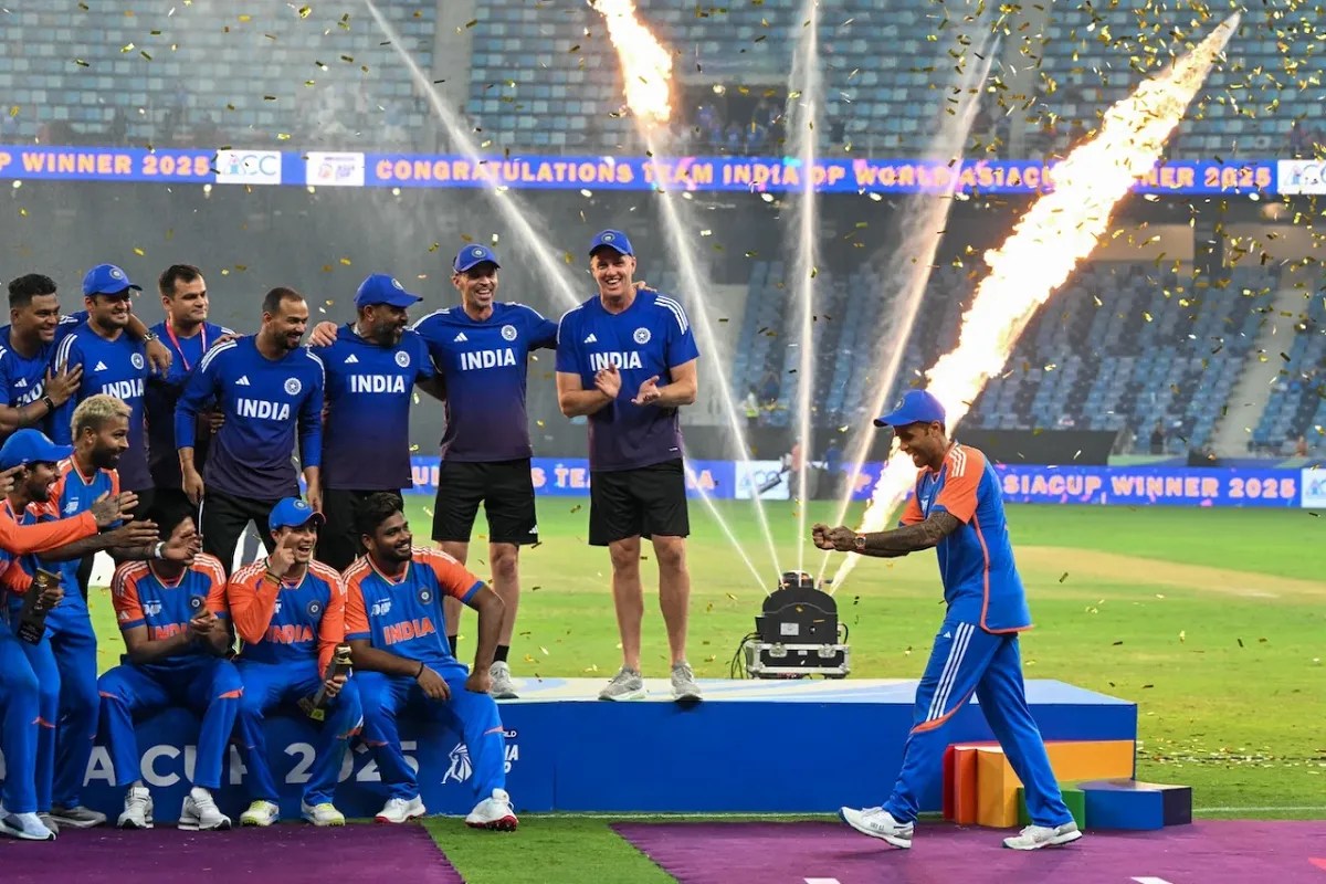 एशिया कप जीतने का जश्न मनाती भारतीय टीम। (Photo - EspnCricInfo)