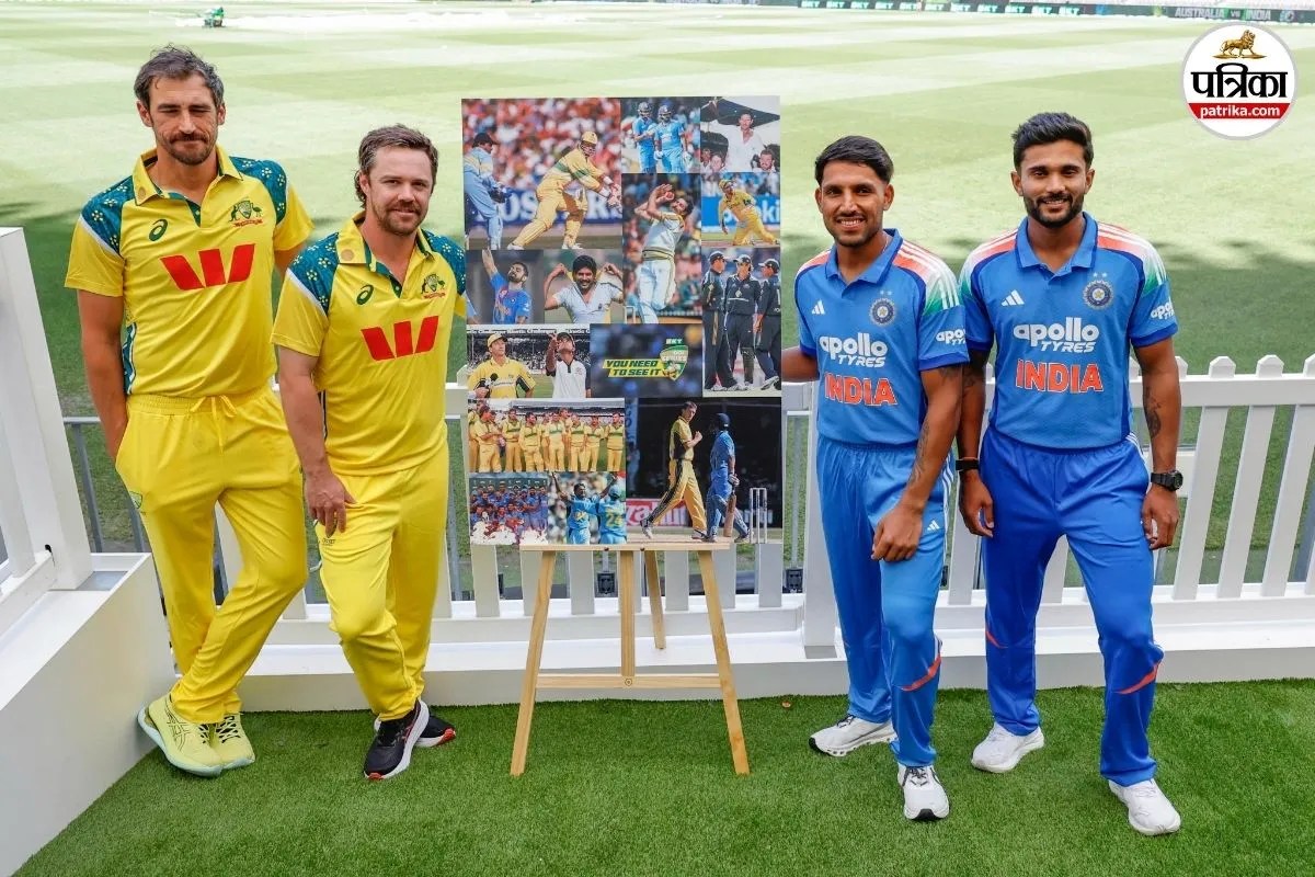 AUS vs IND: भारत और ऑस्ट्रेलिया की क्रिकेट टीमें जल्द ही वनडे सीरीज में एक-दूसरे के आमने-सामने होंगी। दोनों टीमों की इस भिड़ंत से पहले भारतीय टीम की नई जर्सी सामने आई है। भारतीय क्रिकेट टीम की इस जर्सी में एक बदलाव देखने को मिला है। अब भारतीय टीम की नीली जर्सी पर ड्रीम-11 की जगह अपोलो टायर्स का लोगो है। दरअसल, दोनों टीमों का प्री सीरीज फोटोशूट हुआ, जिसमें विकेट-कीपर बल्लेबाज ध्रुव जुरेल और ऑलराउंडर नीतीश कुमार ने भारत का प्रतिनिधित्व किया, वहीं ऑस्ट्रेलिया की तरफ से मिचेल स्टार्क और ट्रैविस हेड शामिल हुए। ऑलराउंडर अक्षर पटेल ने अलग से मीडिया से बातचीत की। भारतीय क्रिकेट कंट्रोल बोर्ड (BCCI) की तरफ से 'एक्स' पर पोस्ट शेयर कर इसकी जानकारी दी गई।