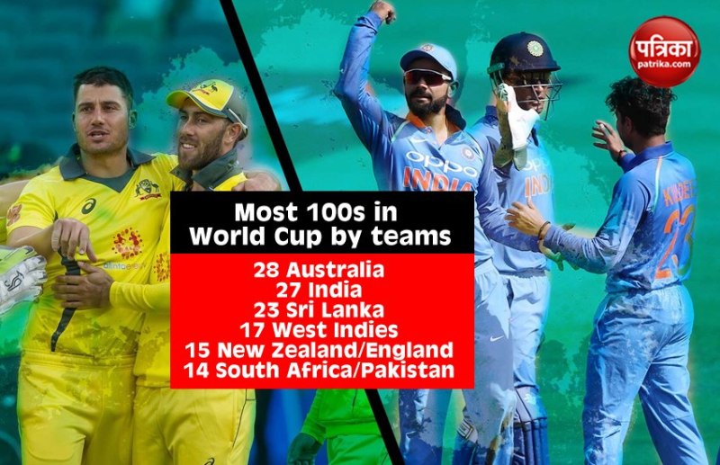 वर्ल्ड कप मैचों में सर्वाधिक शतक जमाने वाले देशः