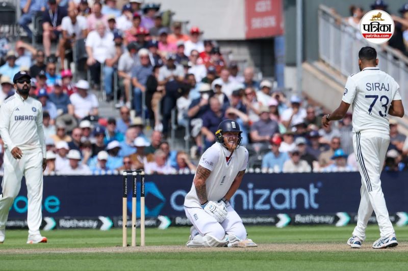मोहम्मद सिराज की गेंद लगने के बाद दर्द से कराहते इंग्लैंड के कप्तान बेन स्टोक्स। (फोटो सोर्स: IANS)