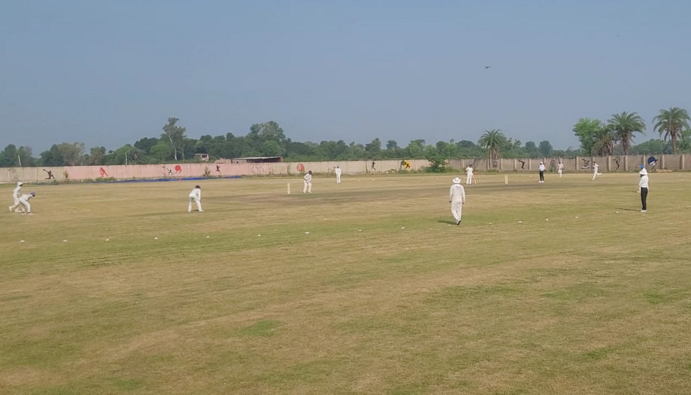 बांसवाड़ा में आयोजित मैच के तहत क्षेत्ररक्षण करते खिलाड़ी।