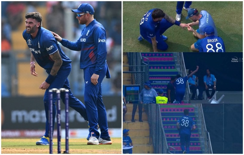 Reece Topley England vs South Africa, World cup 2023: वर्ल्ड कप 2023 का 20वां मुक़ाबला गत चैम्पियन इंग्लैंड और दक्षिण अफ्रीका के बीच खेला जा रहा है। मुंबई के वानखेड़े स्टेडियम में खील आज रहे इस मैच में इंग्लैंड के तेज गेंदबाज रीस टॉपले मैच के दौरान बुरी तरह चोटिल हो गए। चोट इतनी गंभीर थी कि टॉपले को मैदान छोड़ना पड़ा। लेकिन उन्हें ये पसंद नहीं आया और पवेलियन जाते वक़्त वे काफी नाराज़ हो गए।