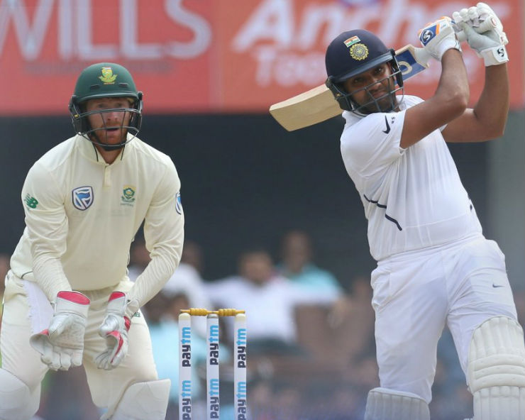 नई दिल्ली। टेस्ट क्रिकेट में बतौर ओपनर रोहित शर्मा ने अपनी अलग पहचान बना ली है। बतौर ओपनर तीन टेस्ट मैचों में तीन सेंचुरी लगाने वाले रोहित शर्मा की तुलना अब पूर्व भारतीय सलामी बल्लेबाज वीरेंद्र सहवाग से होने लगी है। रविवार को रोहित शर्मा ने दक्षिण अफ्रीका के खिलाफ तीसरे टेस्ट मैच की पहली पारी में दोहरा शतक जड़ दिया। रोहित ने डबल सेंचुरी छक्के के साथ पूरी की। इसी के साथ रोहित ने एक शानदार रिकॉर्ड में एमएस धोनी को पीछे छोड़ दिया है।