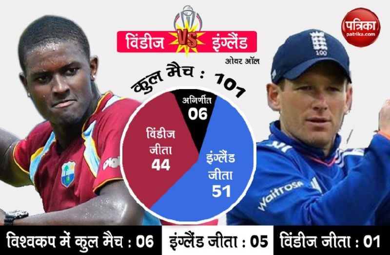अगर आंकड़ों की बात करें तो इंग्लैंड को विंडीज पर बढ़त हासिल है। इन दोनों के बीच अभी तक कुल 101मैच हुए हैं। इनमें 51 में इंग्लैंड को जीत मिली है, जबकि विंडीज सिर्फ 44 मैच जीता है। इन दोनों के बीच बाकी के छह मैच अनिर्णीत रहे हैं।