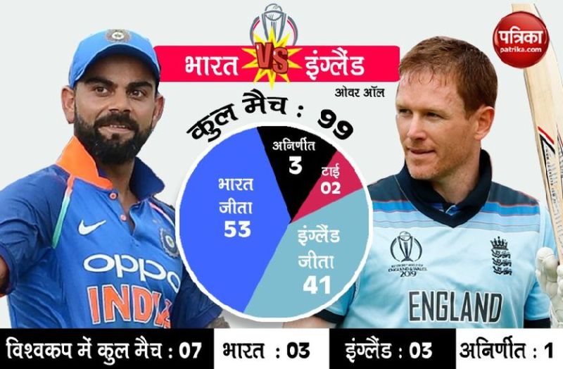 अगर विश्व कप की बात करें तो भारत और इंग्लैंड के बीच कुल सात मैच खेले गए हैं। इनमें से दोनों टीमों को तीन-तीन मैच में जीत मिली है, जबकि एक मैच का कोई नतीजा नहीं निकला है।