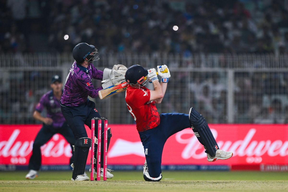 इस मुकाबले में स्कॉटलैंड ने पहले बल्लेबाजी करते हुए 19.4 ओवर में 152 रन बनाए। इंग्लैंड की टीम ने 18.2 ओवर में 5 विकेट खोकर इस लक्ष्य को हासिल कर लिया। इंग्लैंड ने टॉस जीतकर पहले गेंदबाजी करने का फैसला किया। स्कॉटलैंड की शुरुआत अच्छी नहीं रही और जॉर्ज मुनसे सिर्फ चार रन बनाकर आउट हो गए, जबकि ब्रैंडन मैकमुलेन खाता भी नहीं खोल सके। इसके बाद माइकल जोन्स को रिची बेरिंगटन का साथ मिला और दोनों ने टीम को 40 रन के पार पहुंचाया। माइकल जोन्स 33 रन बनाकर पवेलियन लौटे, जबकि टॉम ब्रूस ने 24 रन की पारी खेली।